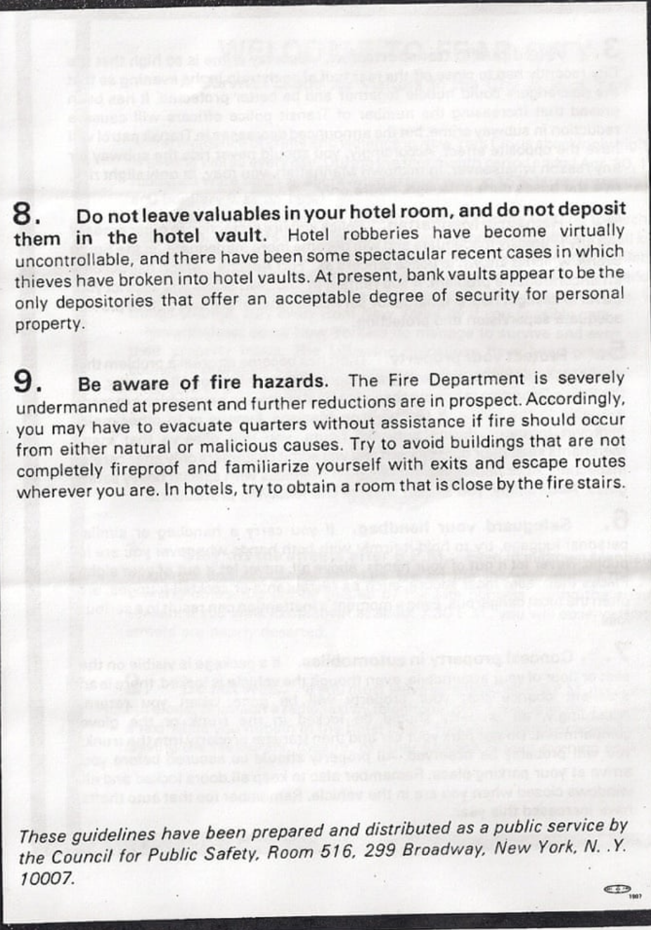 It is a fact that travellers arriving at the city's airports in June 1975 were greeted with perhaps the strangest object ever handed out at the gateway to a major city: a pamphlet with a hooded skull on the cover warning them: "Until things change, stay away from New York City if you can". New Yorkers quickly turned the cover of Fear City into a T-shirt, sold to tourists in souvenir shops alongside other classics such as "Welcome to New York".